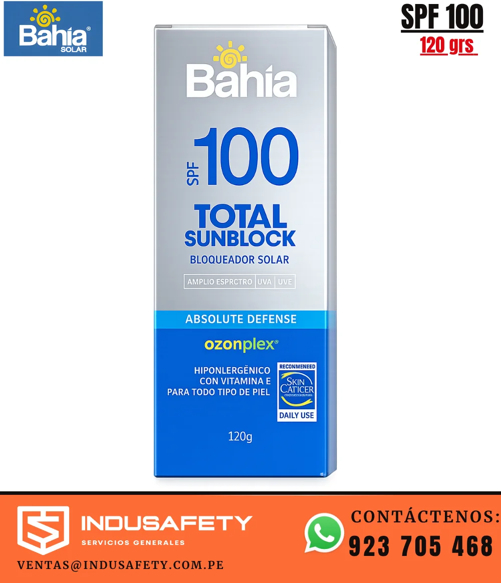 Si buscas una alternativa de protección solar para ambientes de alta exposición, el Bloqueador Solar Bahía SPF 100 x 120 g es una opción funcional para complementar los programas de seguridad ocupacional y bienestar del personal. Es un producto recomendado para empresas que desean reforzar la protección frente al sol en tareas al aire libre.