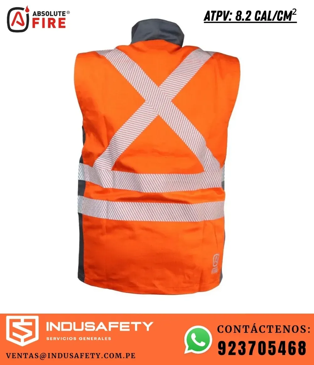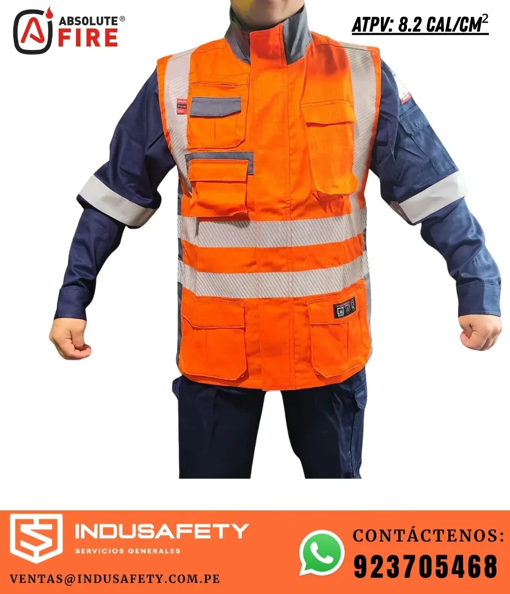 ✅ El Chaleco ignífugo FRSVT Absolute Fire 8.2 cal/cm² está fabricado con tejido técnico FRARCTEX-2400AS, ideal para ambientes de riesgo.