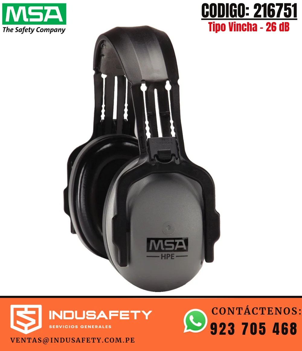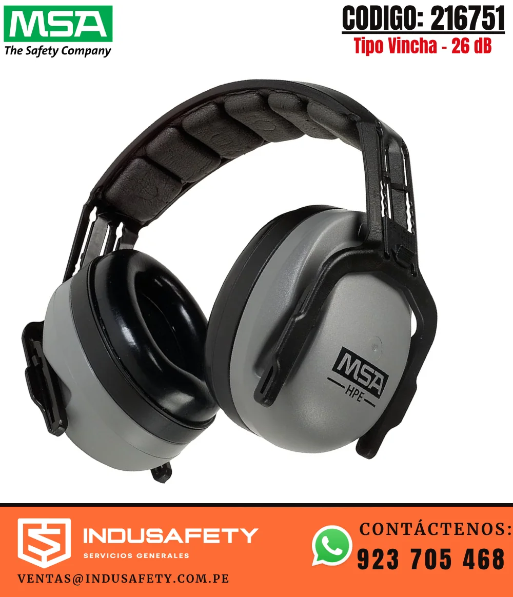 Puedes comprar la Orejera MSA HPE Tipo Vincha 26 dB 216751 en INDUSAFETY PERÚ SAC, proveedor de orejeras MSA en Lima, Perú. Este protector auditivo pasivo ofrece NRR 26 dB, diseño tipo vincha y almohadillas acolchadas para trabajos en minería, construcción e industria, con atención en Lima y envíos a provincias.